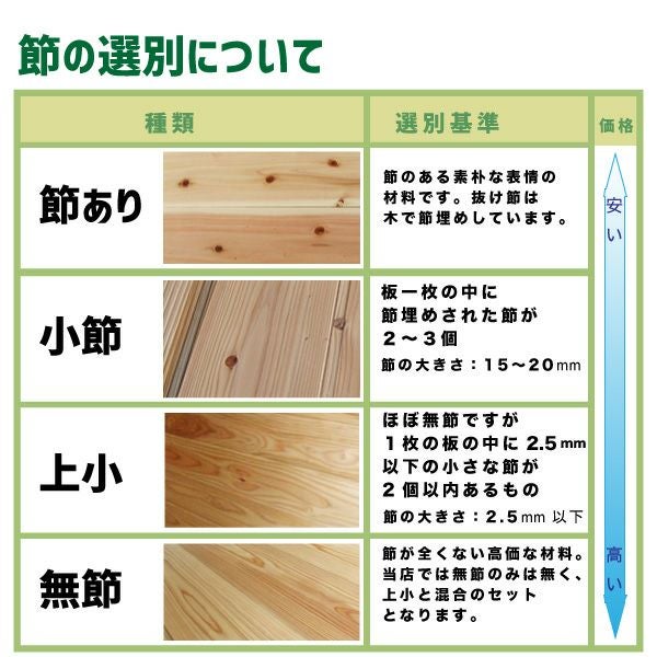 サイズ11×160×1985 10枚入り1束北部九州産日田杉 無節・上小(無節の板と小さい節)小さい節は約2.5ミリ以下の節が2個以内10枚のうち7・8枚は無節です。1束の入り数が10枚, 加工形状が本実突き付け加工です横に並べて1.6m強です。(若干の誤差はあります) 無塗装です。超仕上げ少しはソリのある材もありますが施工には問題ありません北海道・沖縄・離島は別途船賃が掛ります