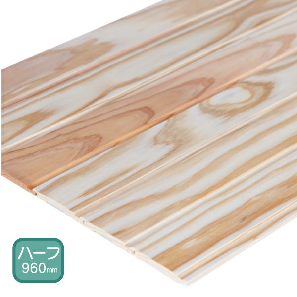 「日田杉 羽目板」/腰壁・壁・天井用/ハーフサイズ/無節・上小/長960mm幅73mm×厚さ10mm/3寸・ム・ホ)