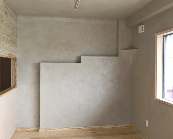 壁と同じ素材なので統一感があり とても素敵ですね。