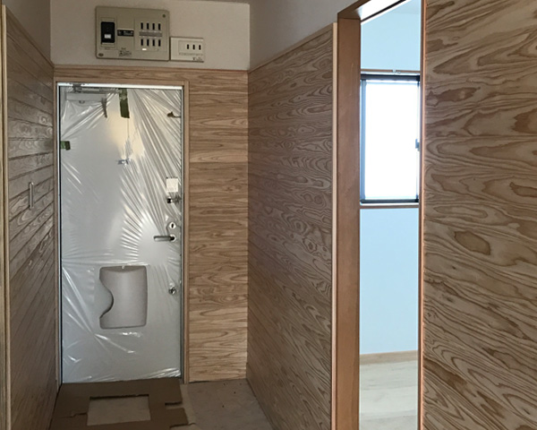 今回アパートの1室をリノベーションされることになり 壁材、天井材としてマルウメの羽目板を施工していただきました。