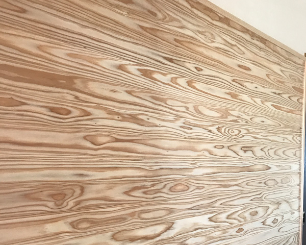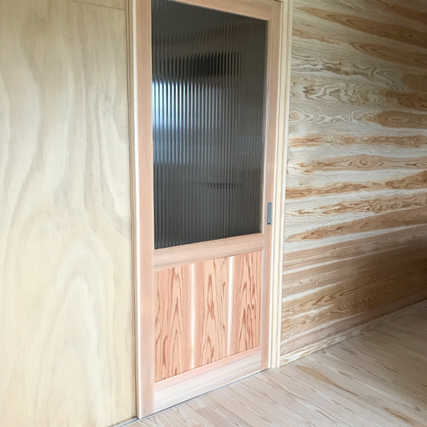 この材料は、和室の天井に使われることが多いのですが 仕上げ方次第でこんなモダンな建具にもなるんですね。