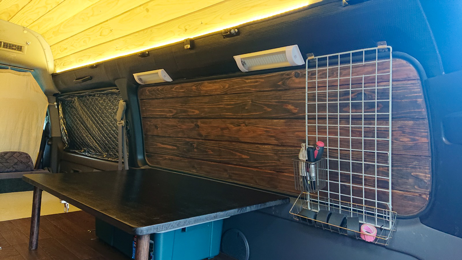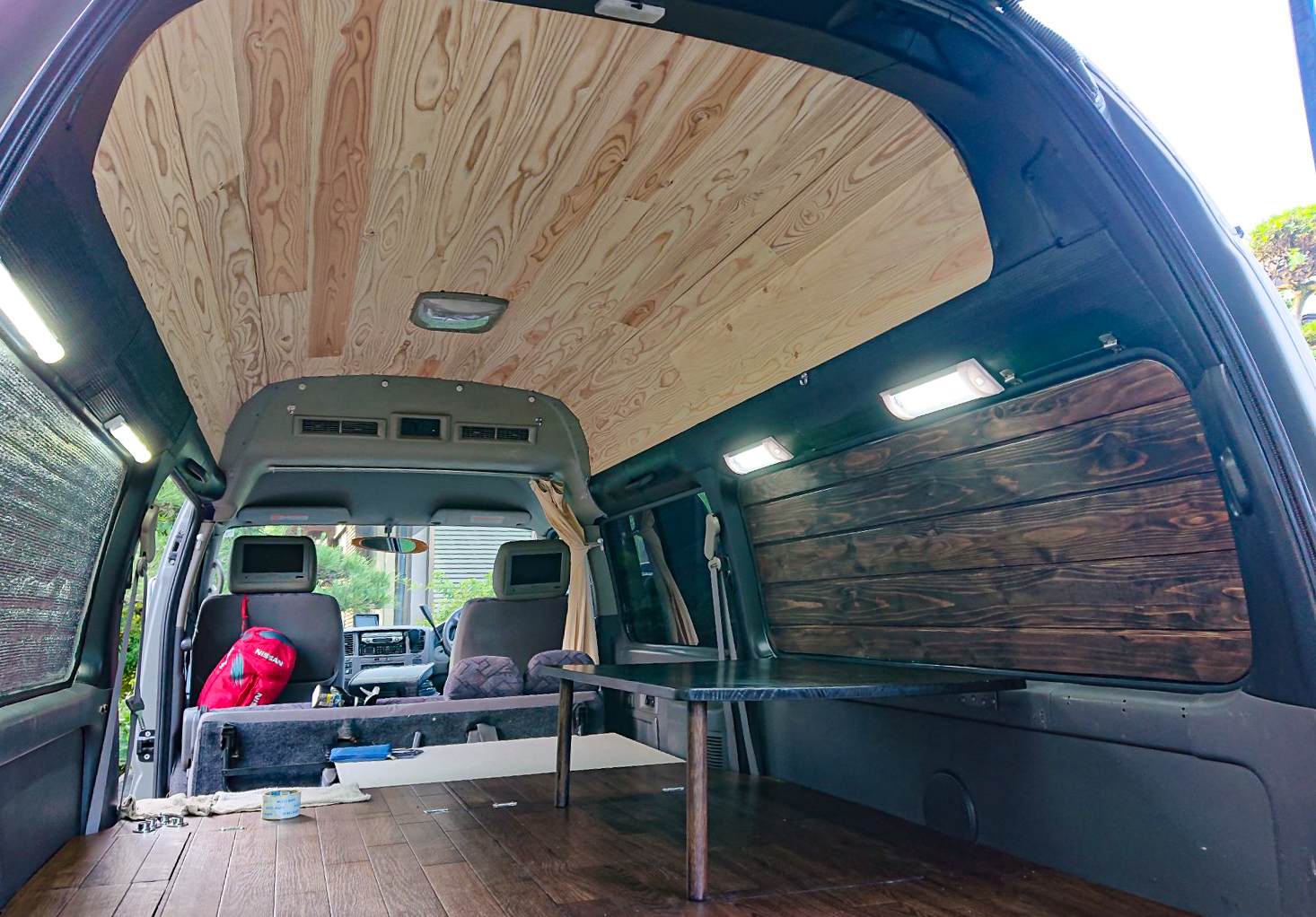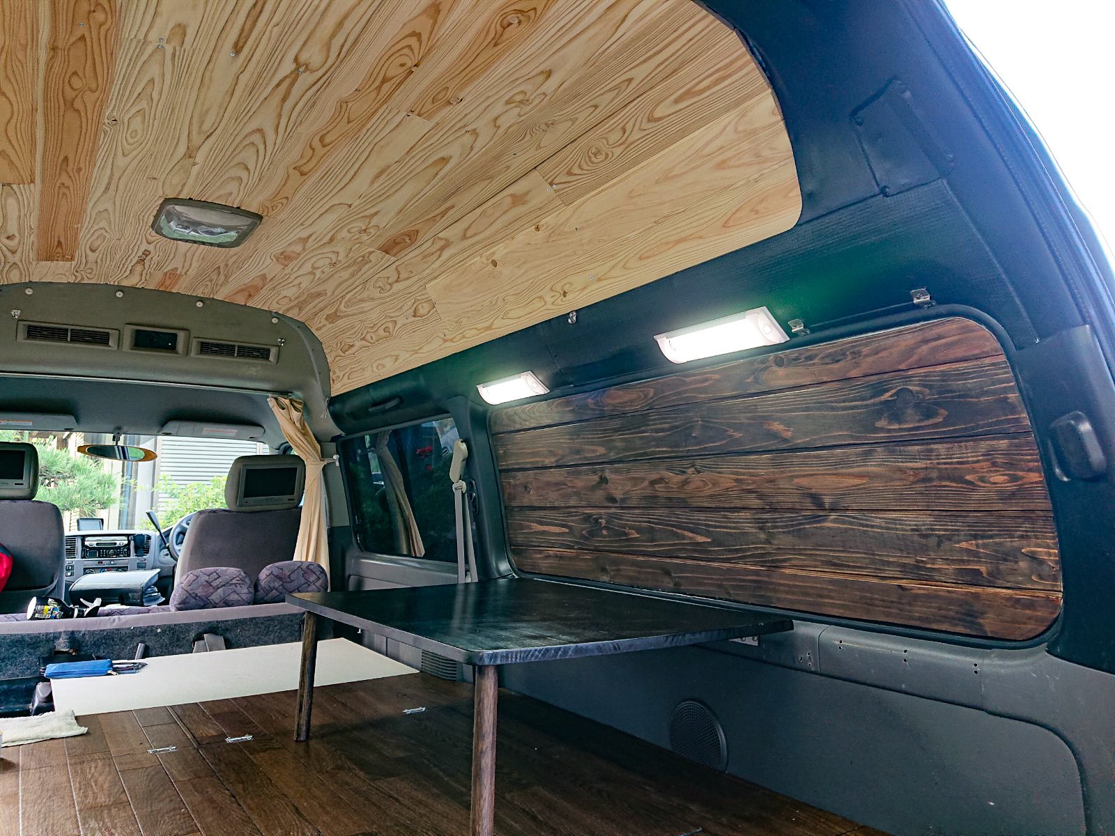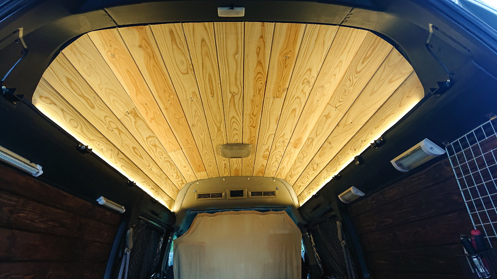 なんと、車内に杉の羽目板を施工されました。