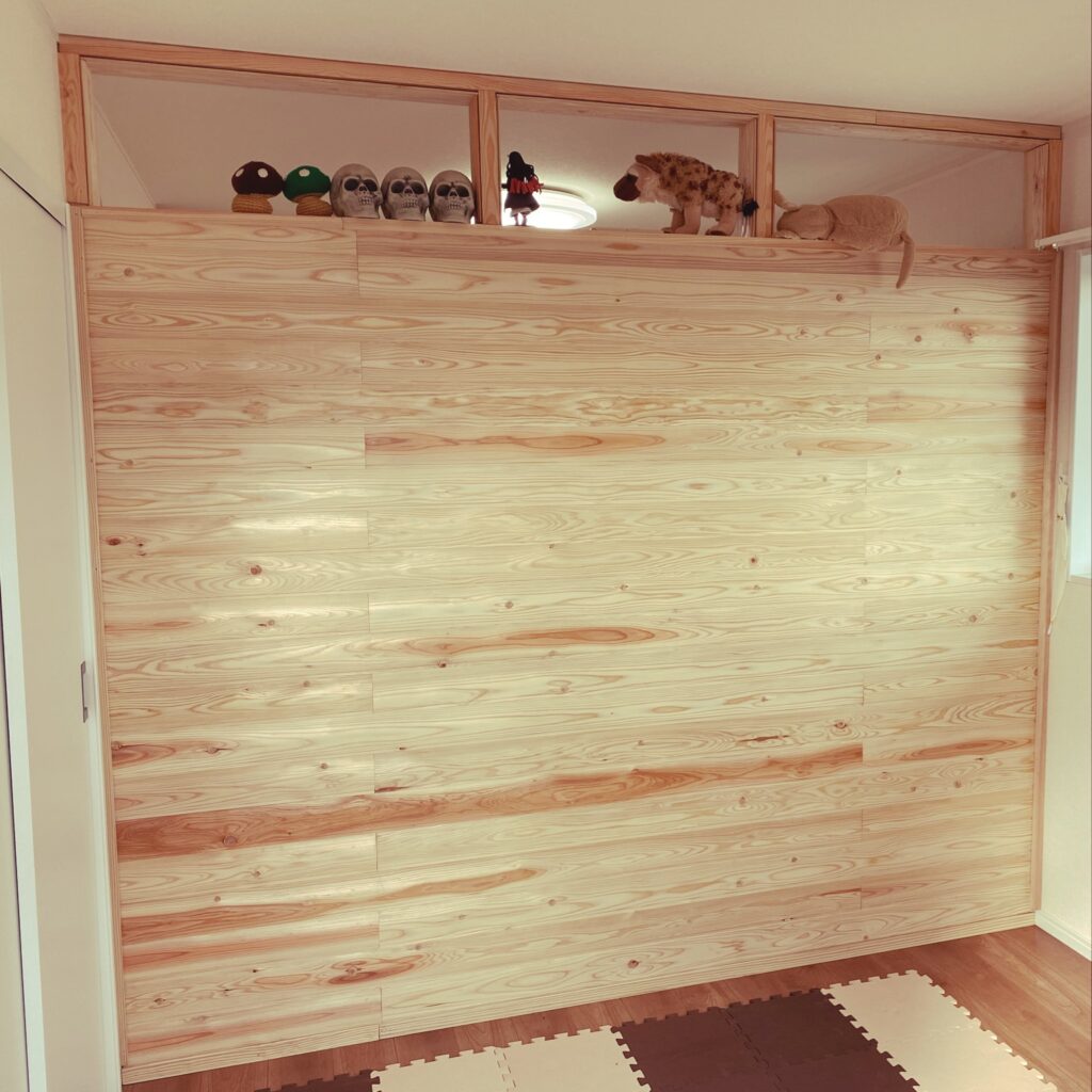 杉の羽目板で子供部屋の間仕切りを作られたそうです!