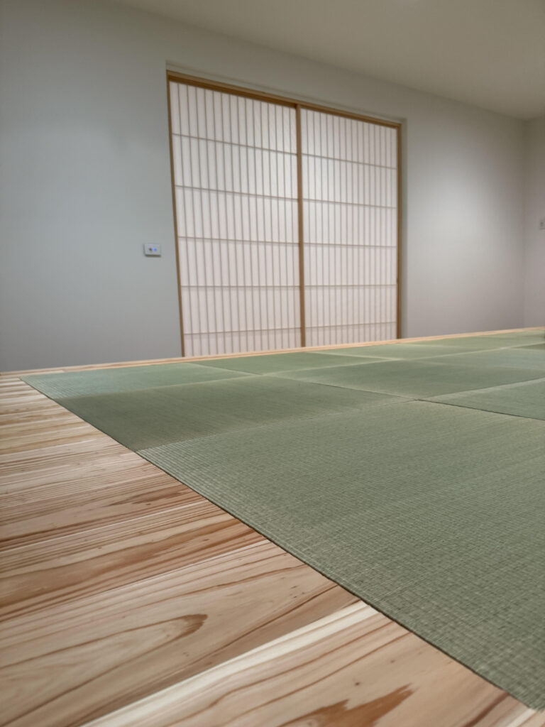 畳の縁部分に、弊社の杉うづくり板を採用していただいています。