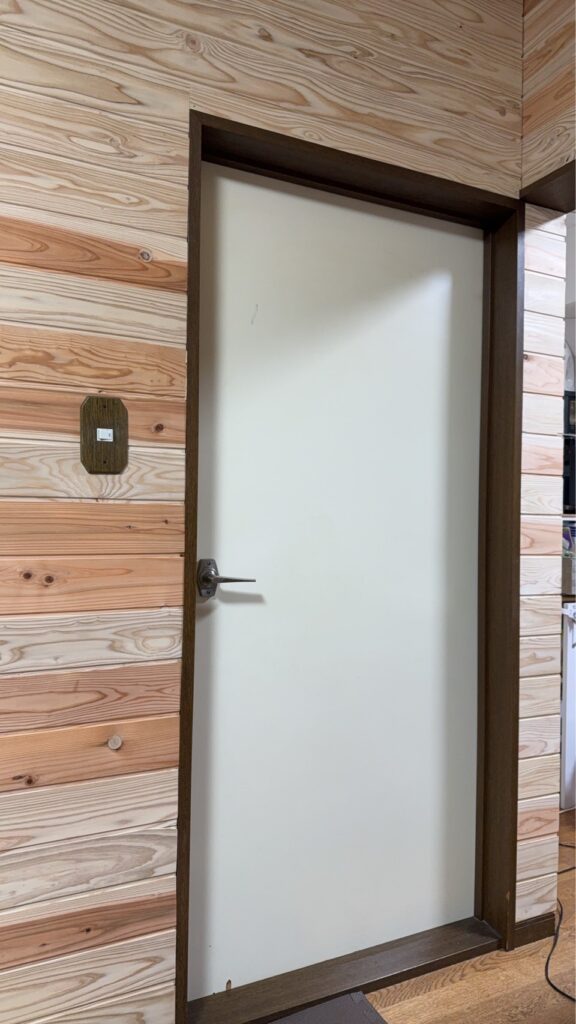 壁に杉の羽目板を横向きに貼ることで、
