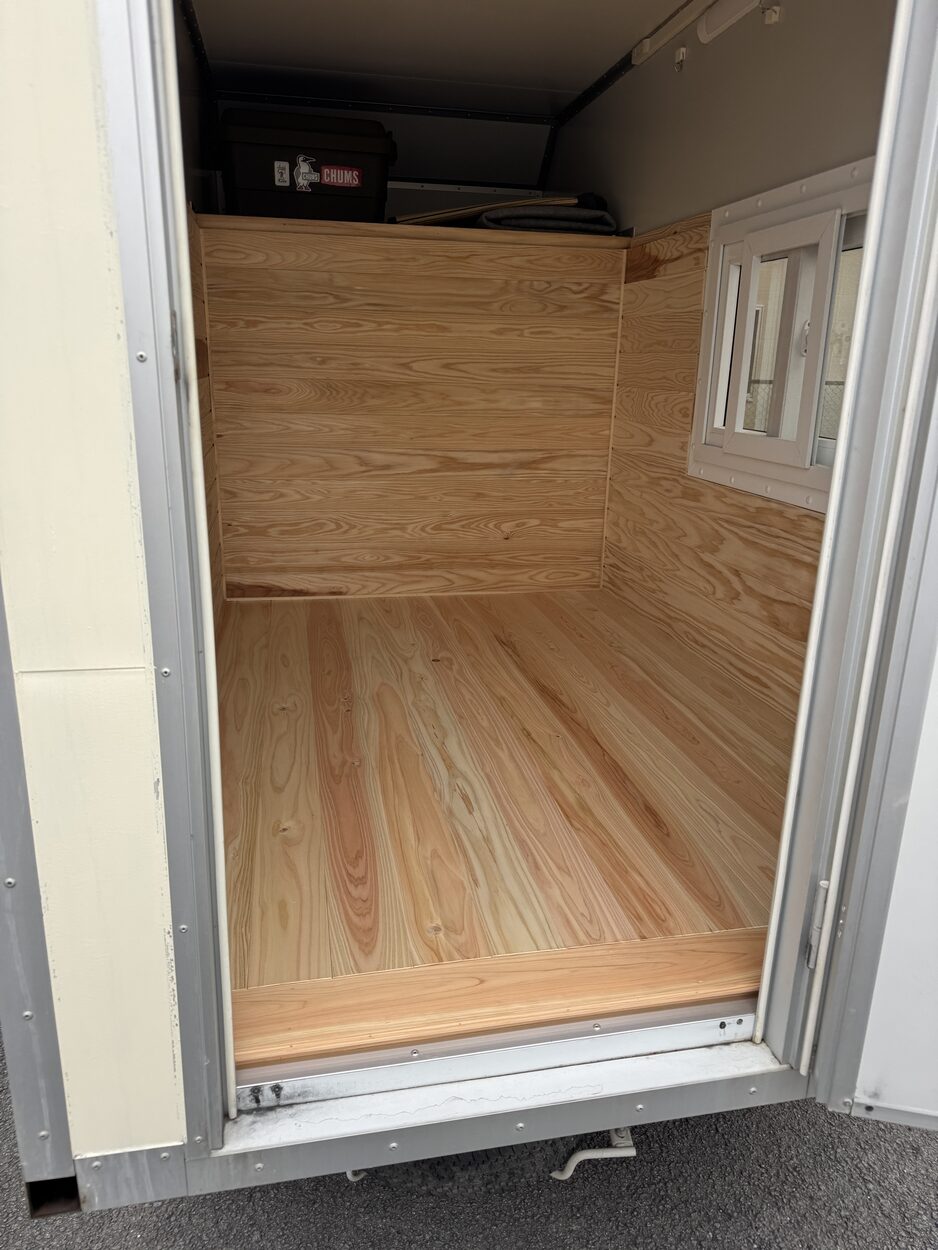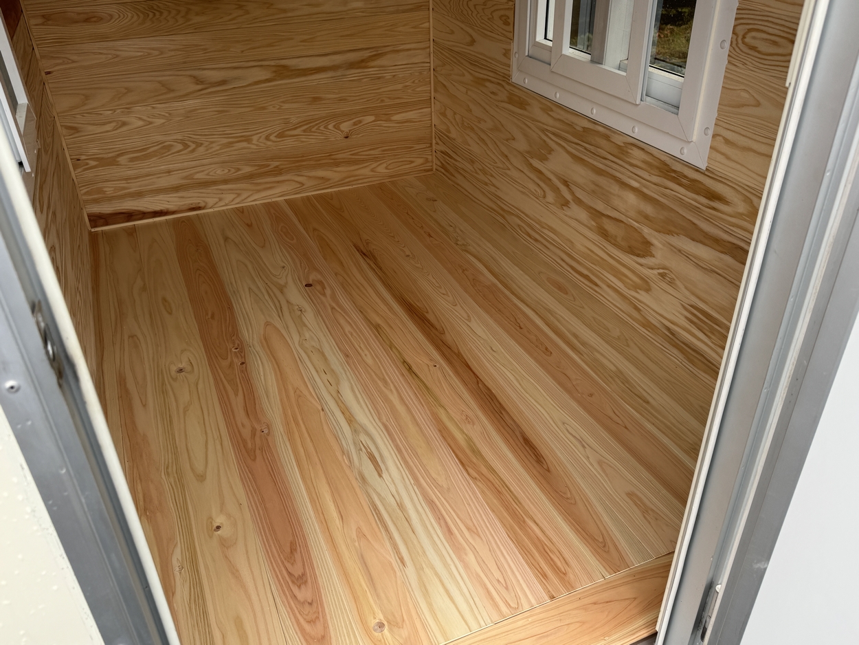 - 木の香り漂う内装:合板ではなく、木目が美しい本格的な国産杉、ヒノキ羽目材を使用。