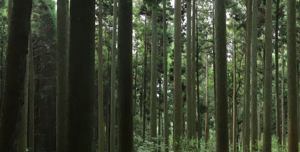 古くから林業が盛んなこの土地は、雨量が多く豊かな自然に恵まれています。その中で木々はゆっくりと、着実に年輪を重ねていきます。こうして育った日田杉は、年輪の幅が狭く目が詰まった「素直な木」となるのが特徴です。
