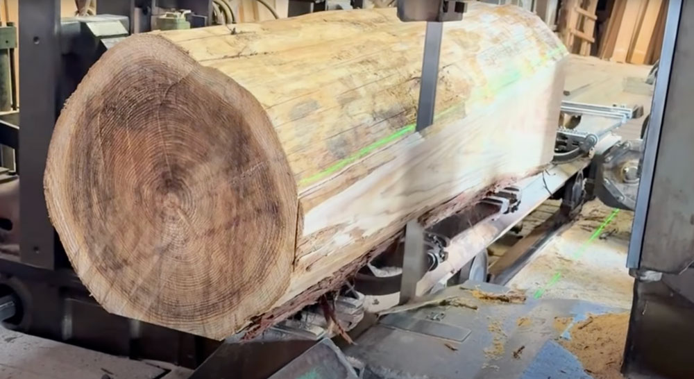 大きな丸太からでも、テーブルにふさわしいまっすぐで美しい板が取れるのは、ほんのわずかです。節の位置や木目の通り方、内部の割れ。木の個性を見極めながら、一枚一枚を吟味して切り出します。