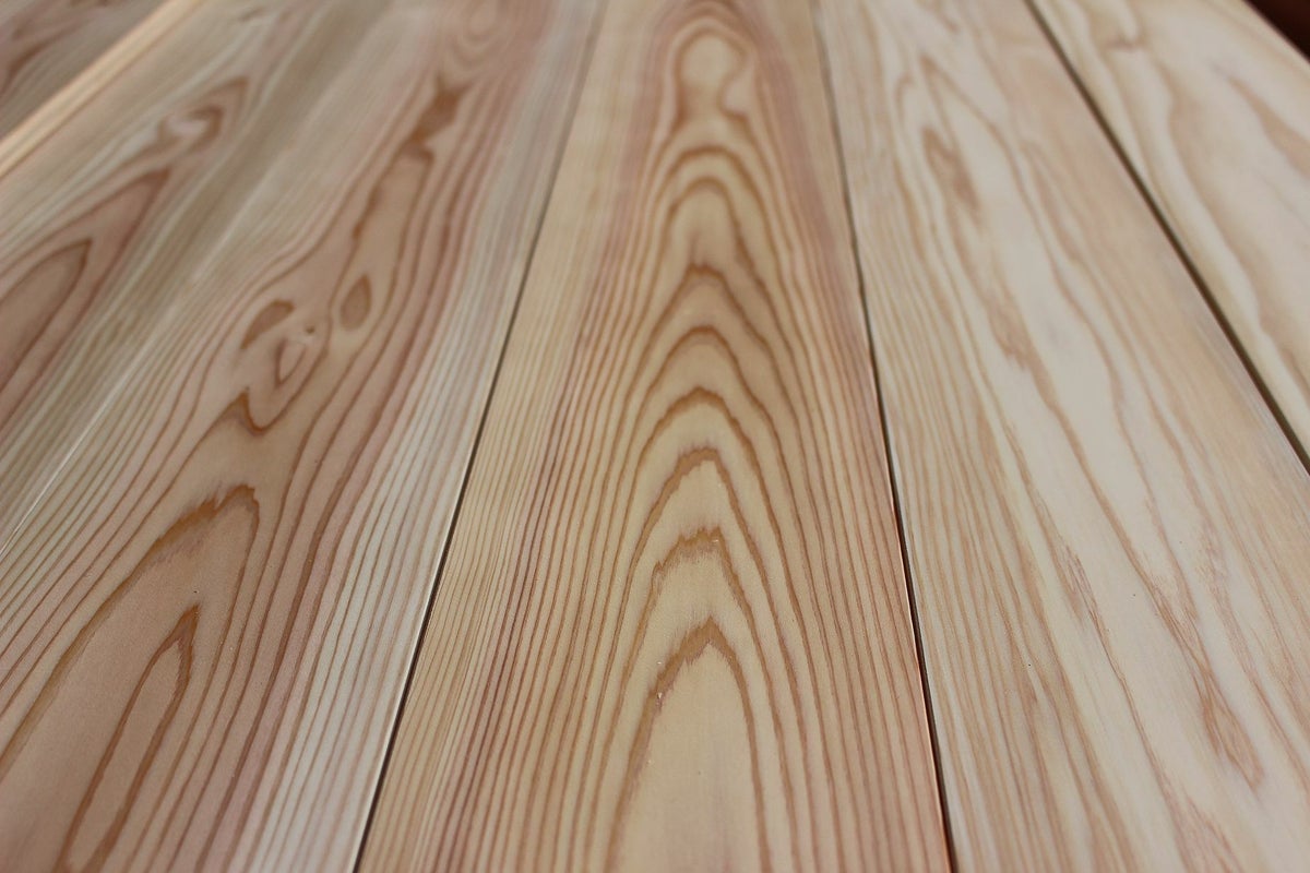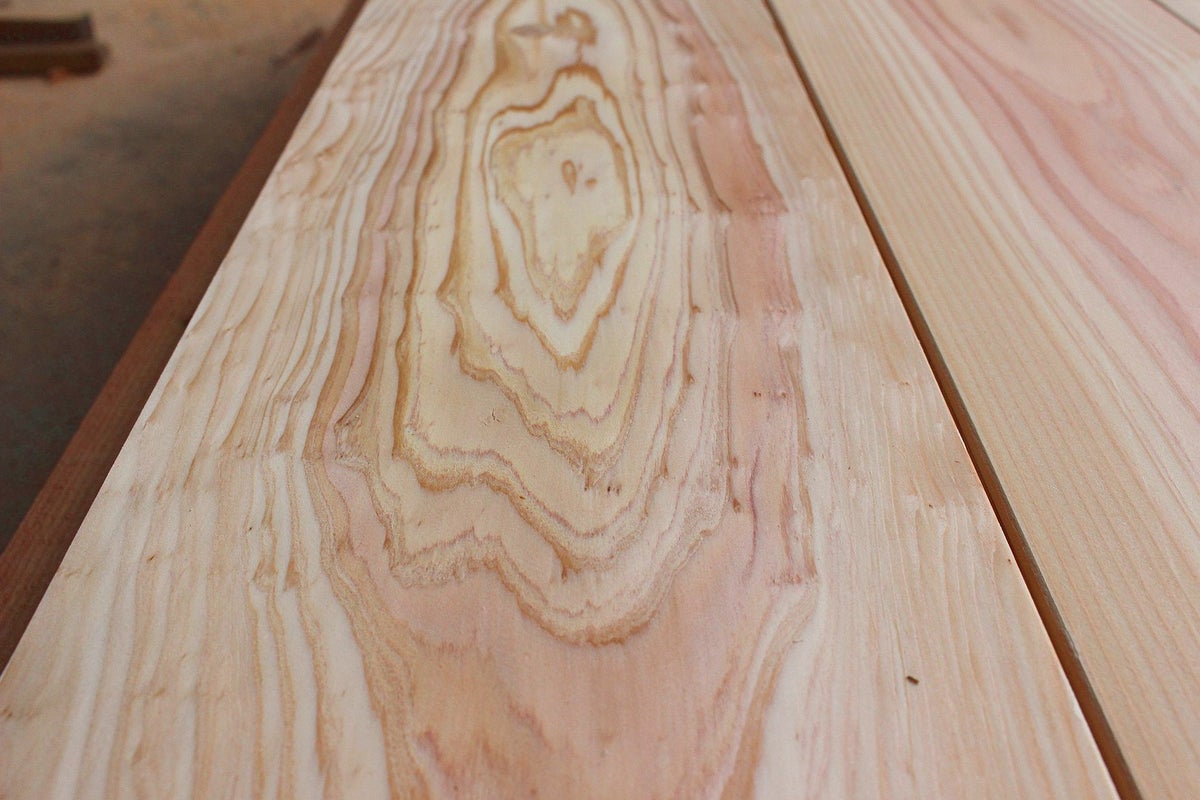 他の画像を見る 水周りの施工におすすめ 「日田杉 フローリング」杉無垢・うづくり加工(床用/総赤身無節・上小/長1900mm×幅135mm×厚さ15mm/赤・5寸・ム・エンド・うづくり ) 杉(無垢材) 床・フローリング 無節・上小 うづくり 総赤身 本実突付け加工 幅130〜135mm 当店特別価格 ¥ 2,450 税込 〜 当店特別価格 ¥ 税込 北部九州産日田杉 上小・小節込みフローリングです。うづくりのフローリングです。横に並べて1.5m強です。(若干の誤差はあります) 無塗装です。うづくり仕上げ。厚みがやや薄めフローリングです。この商品は注文をお受けしてエンドマッチ加工を施します。ヌケ節は、桧の、節で埋め木してあります。 詳細を見る お気に入りに登録する